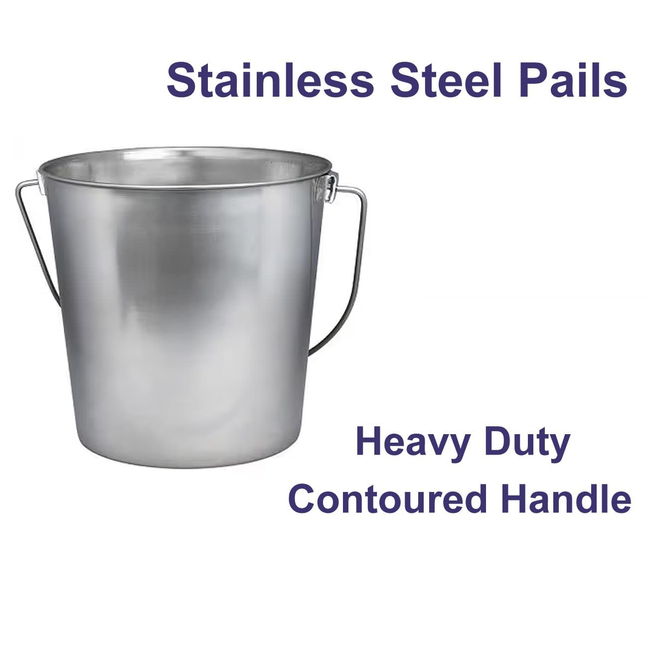 Heavy Duty Stainless Steel Pails are durable, rust & scratch resistant, easy to clean.